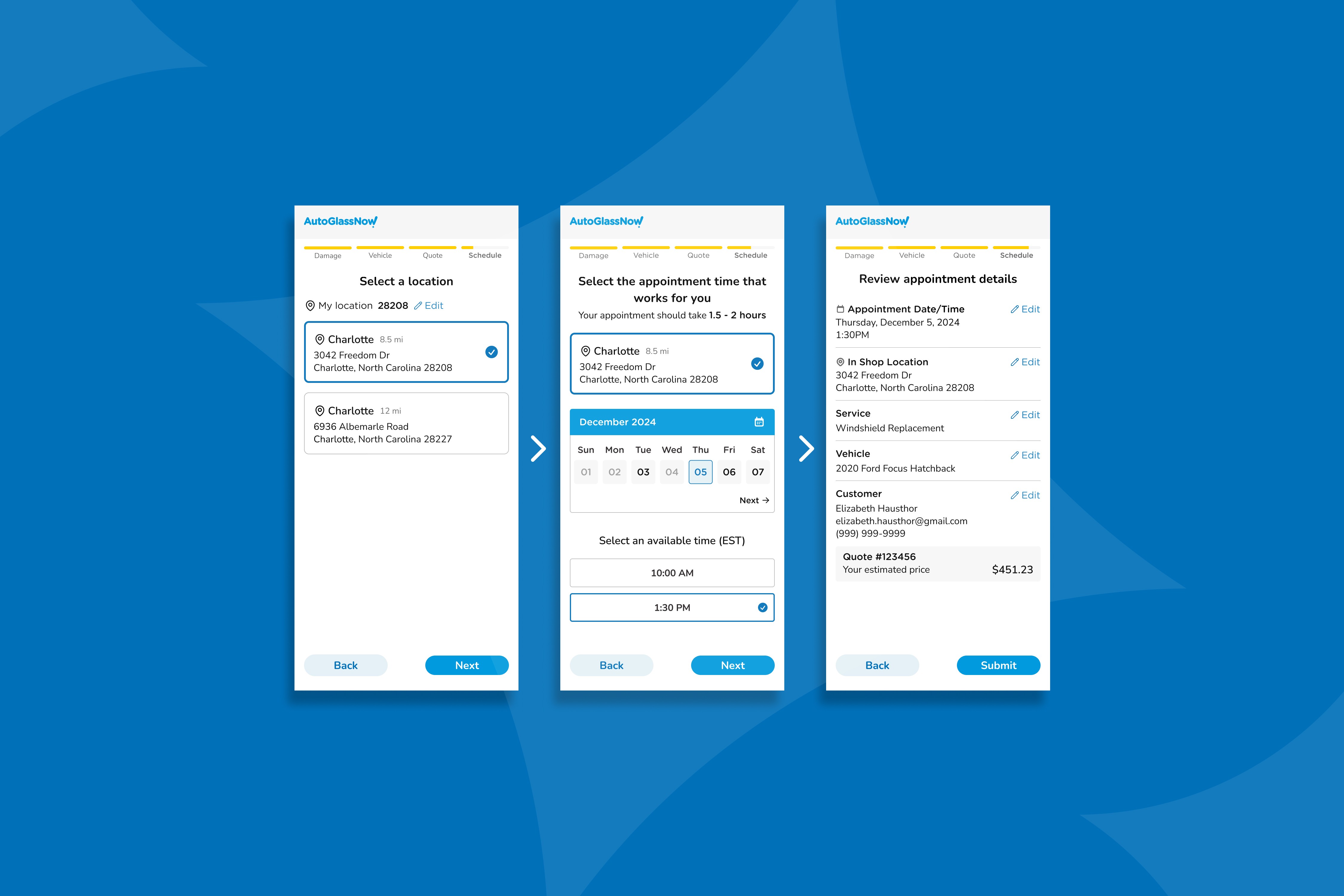 The UX strategy prioritized speed, clarity, and confidence, guiding users from vehicle selection to price estimation with minimal cognitive load. The tool was intentionally designed to feel approachable and transparent, setting expectations early while seamlessly connecting estimation, scheduling, and follow-up steps.