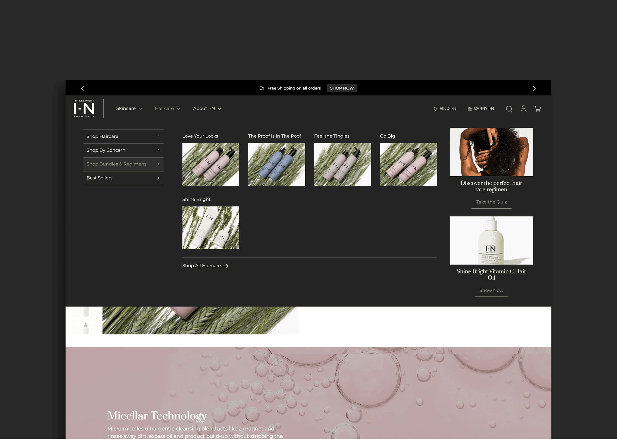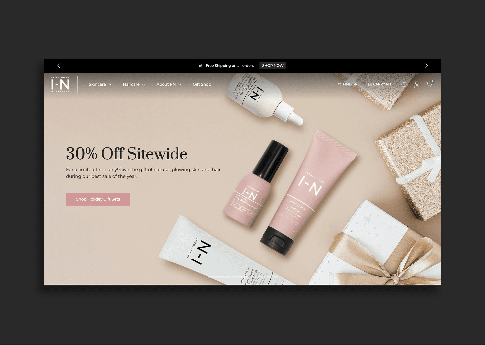 As Creative Director, I led the design and concept development for Intelligent Nutrients' holiday campaign, shaping a festive yet elevated digital experience for the brand's Shopify storefront. The goal was to infuse the site with a seasonal look and feel while keeping the design true to I-N's modern, eco-conscious identity.